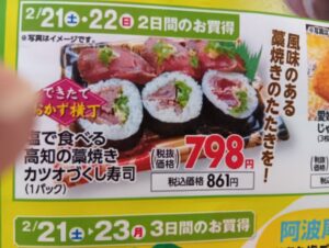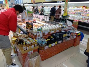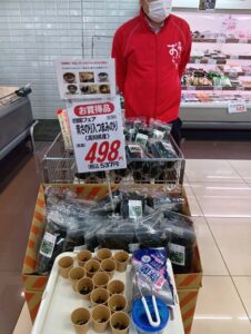 せんどう(千葉県 スーパー)で四国フェアが開催されました。試食販売に5社が参加し、たいへん御好評を頂きました。