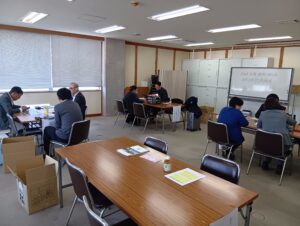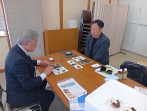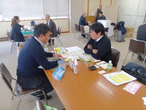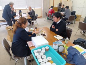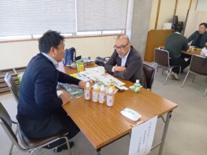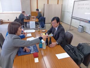 高知県中小企業団体中央会 4階会議室で、高知県酒類・飲料・加工品個別商談会が行われました。この商談会は、高知県中小企業団体中央会様のご協力を頂き、ものづくり・商業・サービス生産性向上促進補助金(フォローアップ事業)使用の事業者対象を中心としたもので、酒造メーカーを含む11社が参加しました。県外から、株式会社大寿(大野社長様)・株式会社石原(石原社長様)・株式会社ローヤルよつや(大久保社長様)・ヤマトー商事株式会社(藤原社長様)の4社と商談しました。